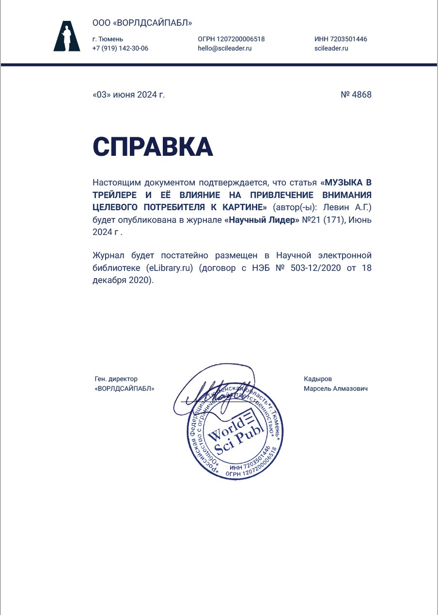 My article "BASIS OF EQUALIZATION AND RECOMMENDATIONS FOR MUSIC MIXING IN HEADPHONES: PRACTICAL ASPECT" was published in the scientific and methodological journal "Music and Electronics" issue 4 quarter 2023. I would like to express my gratitude to the entire editorial staff of the journal, especially to the director of the journal, candidate of art history and member of the Union of Moscow Composers, Elena Orlova!