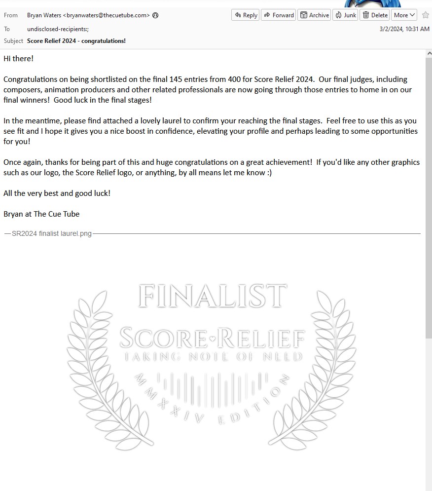 Short Film “Cozen” Directed by S. Joe Downing and Featuring My Original Score, Achieves International Recognition